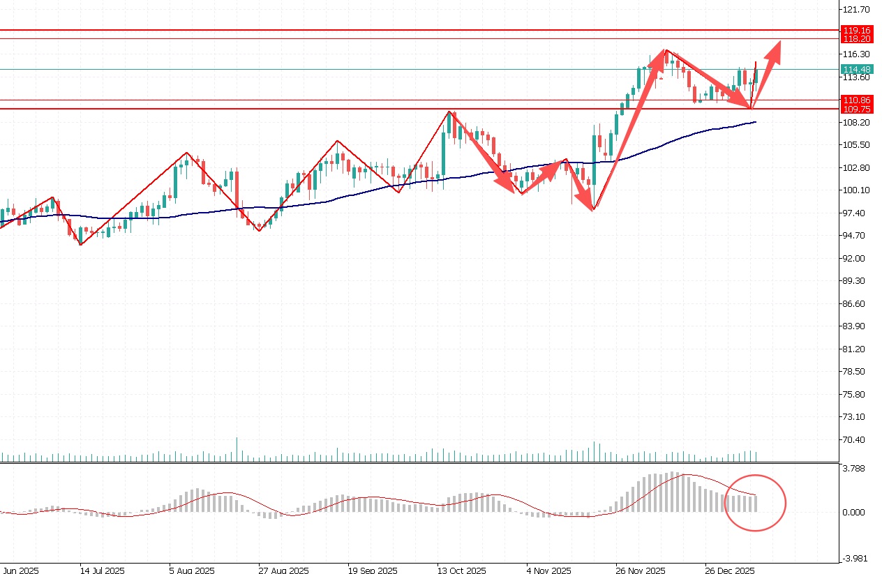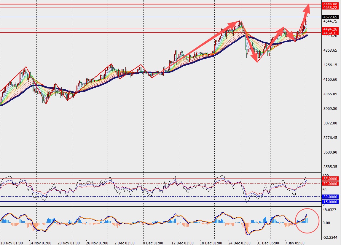 技术面:黄金在H4周期内延续震荡走高走势,目前价格运行于48日均线之上,整体结构偏强。MACD双线与柱状图同步向上发散,显示多头动能持续增强。若后续能够有效站稳在关键支撑位上方,金价有望进一步上探高位。随着2026年市场对全球经济放缓的预期升温,避险资金或继续流入贵金属市场。