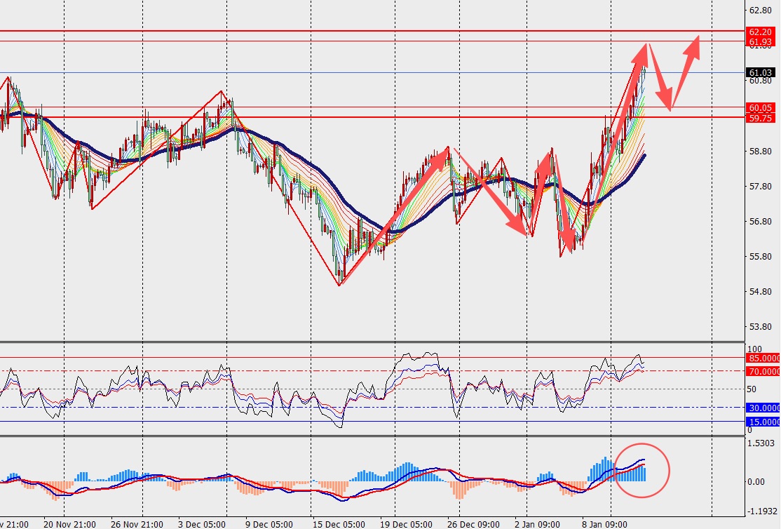 技术面:原油在H4周期维持震荡上行结构,价格运行于48日均线之上,整体趋势偏多。同时,MACD双线与量能柱持续在零轴上方扩散,显示多头动能保持活跃。2026年全球需求增长放缓叠加供应端逐步释放,或对中长期油价形成一定压制,但短期走势仍以强势震荡为主。