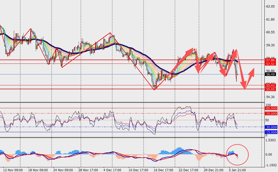 从技术结构来看,美原油在 H4 周期内延续高位回落走势,当前价格运行于 48 日多空分界线下方。MACD 双线于零轴附近持续下行,量能配合走弱,显示空头动能占优。随着政策利空逐步释放,油价短线承压回调,供给增加预期进一步强化市场下行压力。