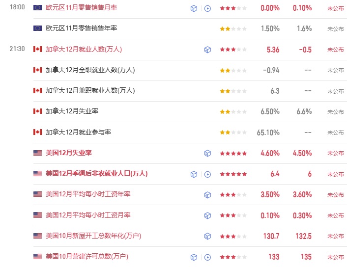 从数据预期来看,市场预计 12 月美国新增非农就业人数约 6.7 万人。同时,美国上周初请失业金人数温和上升,使市场对美联储年内降息预期有所增强,低利率环境预期对黄金形成支撑。